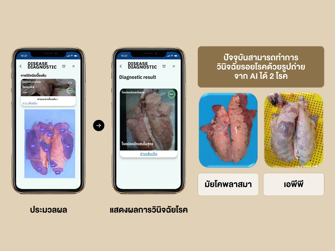 กิจการในประเทศไทยพัฒนาปัญญาประดิษฐ์ (AI) ต่อยอดแอปพลิเคชันการวินิจฉัยอัจฉริยะ อำนวยความสะดวกบุคลากรที่เกี่ยวข้องในการจัดการปัญหาสุขภาพสุกร เพิ่มฟังก์ชันการวิเคราะห์โรคจากรูปถ่าย โดยปัจจุบันสามารถแยกรอยโรคมัยโคพลาสมา และโรคเอพีพี ซึ่งเป็นโรคติดเชื้อแบคทีเรียในระบบทางเดินหายใจที่ก่อให้เกิดความเสียหายสูงในการเลี้ยงสุกรได้