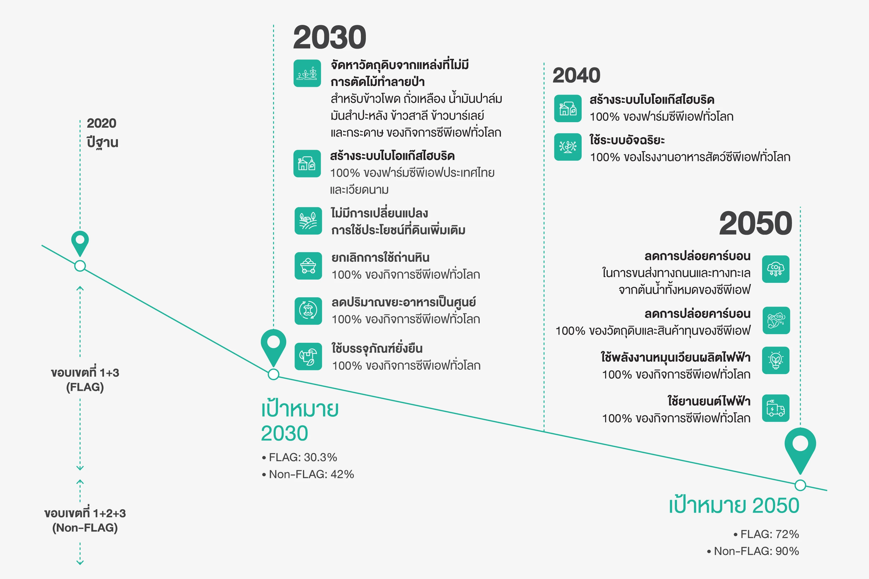 ซีพีเอฟตระหนักถึงบทบาทการมีส่วนร่วมในการบริหารจัดการการเปลี่ยนแปลงสภาพภูมิอากาศ จึงได้กำหนดความมุ่งมั่นที่จะบรรลุเป้าหมายการปล่อยก๊าซเรือนกระจกสุทธิเป็นศูนย์ (NET-ZERO) ตลอดห่วงโซ่คุณค่าภายในปี 2050