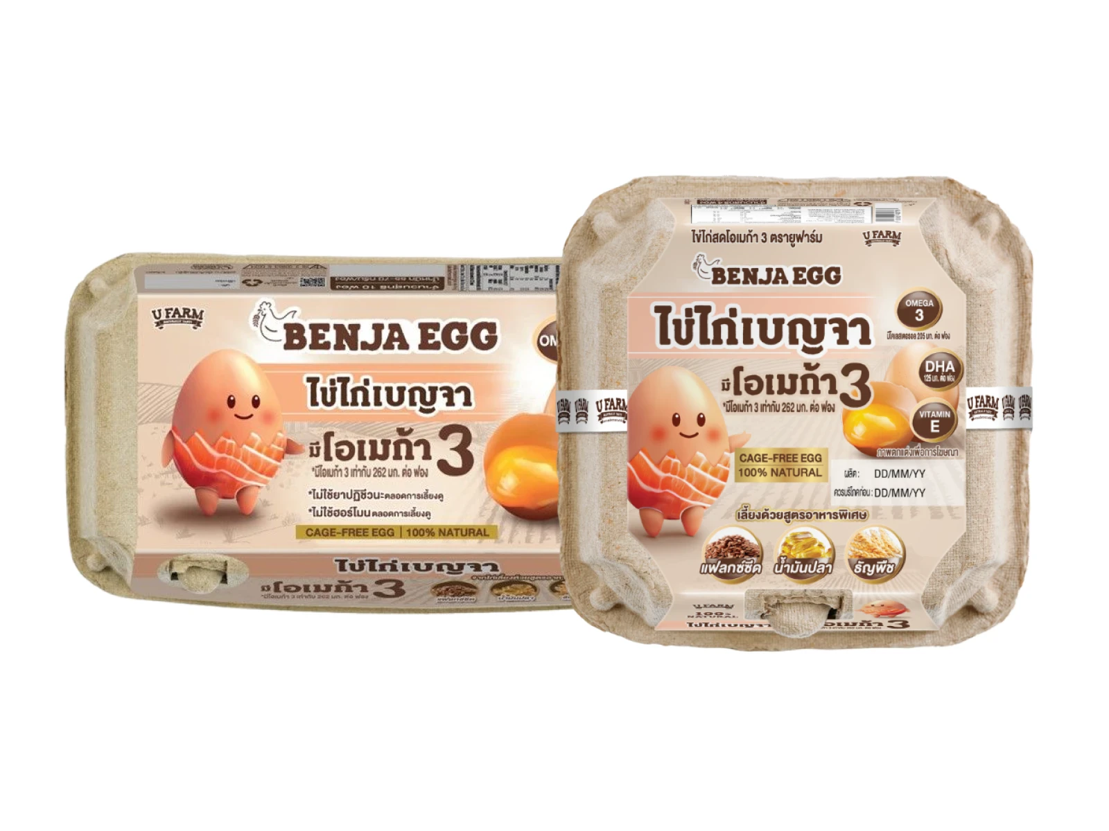 ไข่ไก่เบญจา โอเมก้า 3 ตรายูฟาร์ม ขนาดบรรจุ 4 และ 10 ฟอง